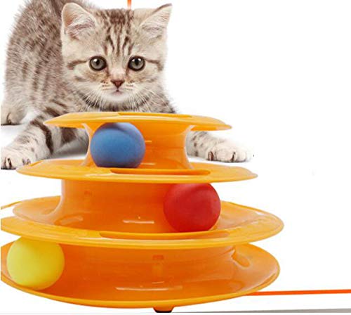 QUANHAO, Giocattolo Gatto, Gatto Gioco interattivo Pet Giocattolo a 3 Strati (Arancione)