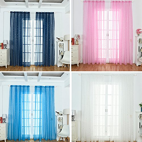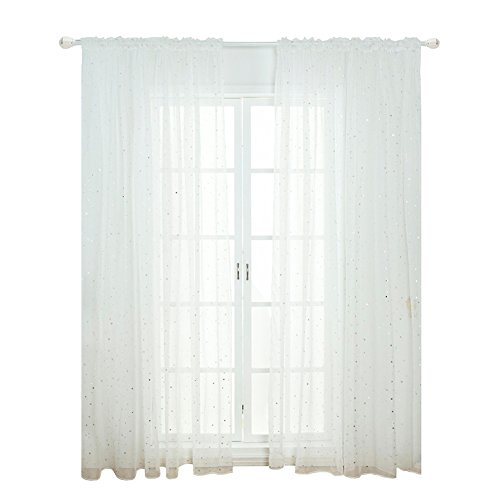 Quanjucheer Tenda moderna in voile di tulle trasparente con stelle brillanti, 100 x 270 cm, colore: bianco