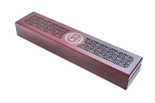 Quantum Abacus Deluxe: Set di bacchette in elegante confezione in legno, bacchette in legno di sandalo rosso con decorazioni in metallo, motivo: prosperità, portabacchette, custodia in legno, HB-S2-M02