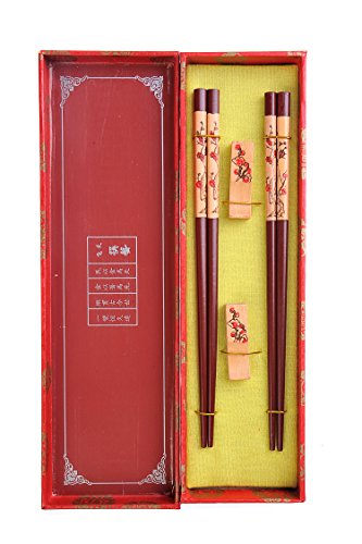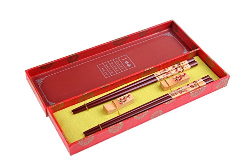 Quantum Abacus Elegante Set di Bacchette in Confezione Decorativa, con Bacchette cesellate in Legno Motivo susino in Fiore e poggiabacchette (2 Paia di Bacchette e 2 poggiabacchette) CB-S2-R-H03