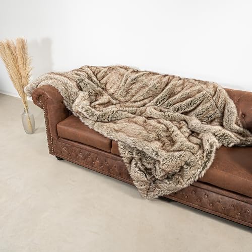 Quantum Interior Coperta reversibile in pelliccia effetto pelliccia, diversi colori e dimensioni (150 x 200 cm, lupo)