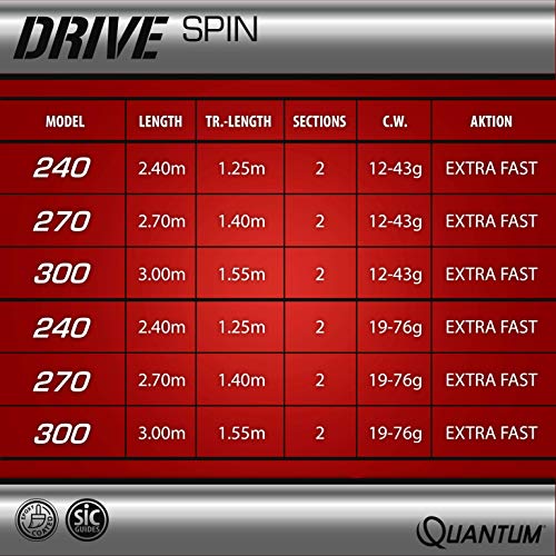 Quantum Premium Drive Spin - Canna da pesca a spinning, 2,40 m, colore: Nero/Argento