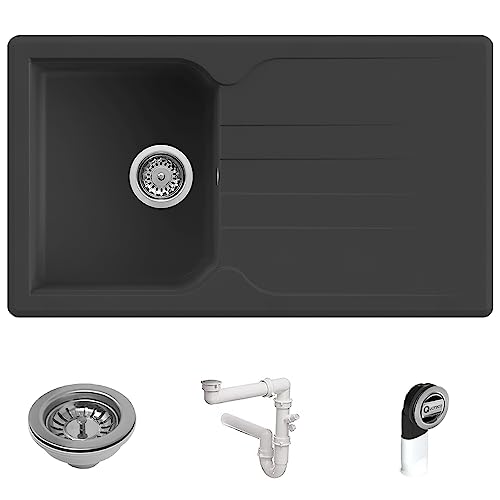 Quareco Prime 861 Lavello da Incasso Granito Nero 86x50 1 Vasca con Gocciolatoio QLP861NE