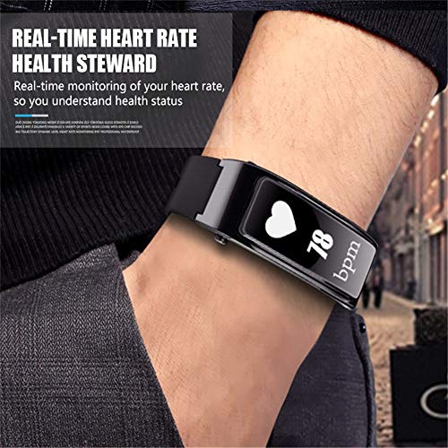 QUARKJK Fitness Tracker TalkBand 2 in1 Smart Bracelet Watch Auricolare Bluetooth Cardiofrequenzimetro Vivavoce Chiama Musica Goditi l'auricolare Smartwatch,Black