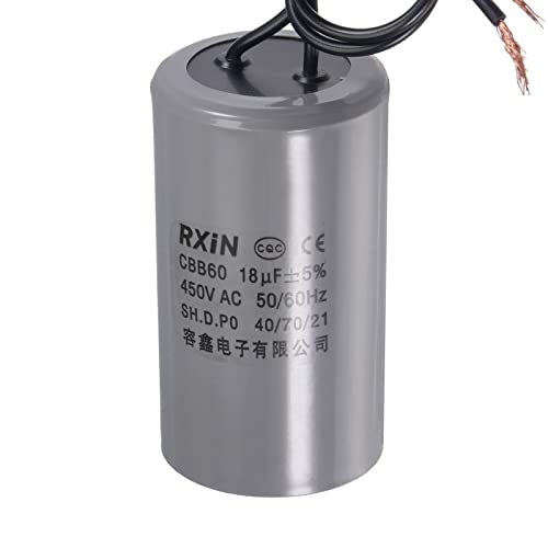 QUARKZMAN 18uF 450V AC 2 Fili 50/60Hz CBB60 Condensatore x 1pz Cilindro per Elettrico Motore Lavatrice Macchine, [Argento, 75x42mm]