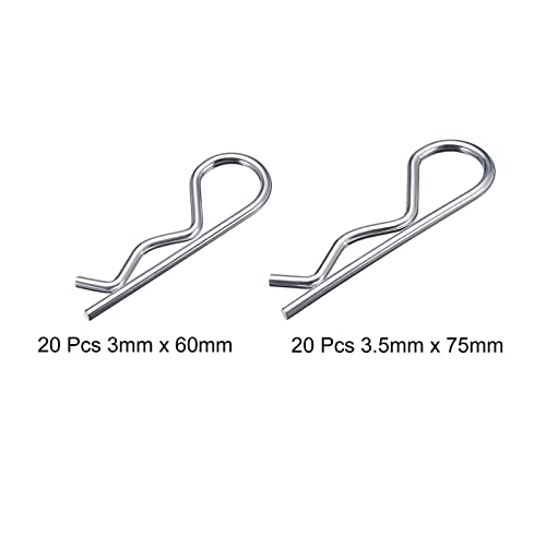 QUARKZMAN Coppiglia Perni - 3x60mm/3.5x75mm Carbonio Acciaio R A forma Molla Clip Perni Fissaggio Ferramenta, Argento Tono, 40pz