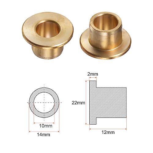 QUARKZMAN 2pz Flangia Cuscinetto Manicotto 10mm Alesaggio 14mm OD 12mm Lunghezza 2mm Flangia Spessore Bronzo Boccola Autolubrificante Boccole Manicotto per Industriale Attrezzature
