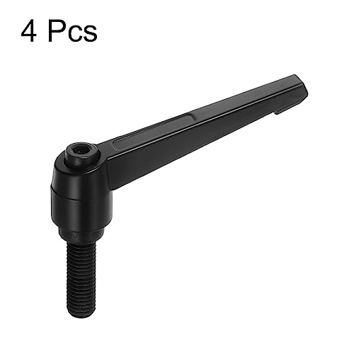QUARKZMAN 4pz Regolabile Serraggio Leva Maniglie M12 x 50mm Maschio Filettatura Bullone Manopole Girevole Vite blockggio Rapido Rilascio Cricchetto Pulsante Maniglia, Nero