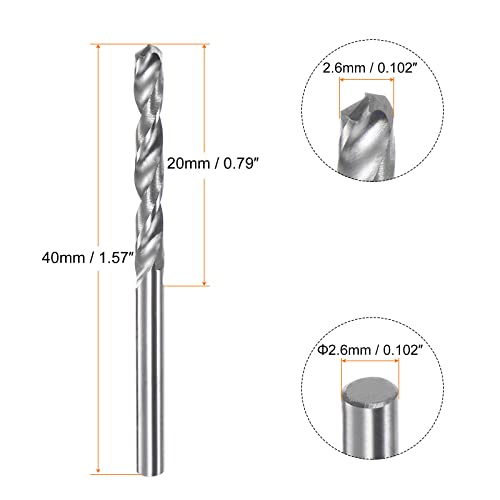 QUARKZMAN 2pz Solido Carburo Trapano Punte 2.6mm C3/K10 Tungsteno Carburo Precisione Mini Micro Dritto Codolo Torsione Trapano Punta per Inox Acciaio Metallo Plastica Legno