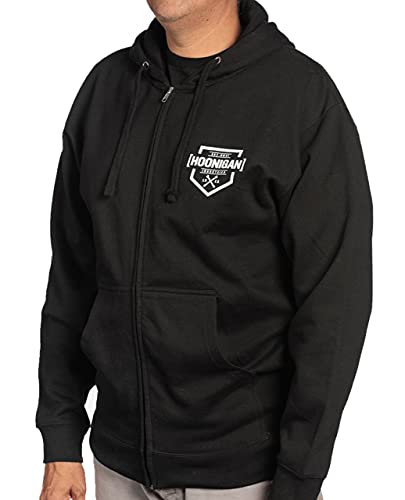Quarter Mile Clothing Bracket X Hoonigan Industries Ken Block - Felpa da uomo con cappuccio e cerniera, Nero, M