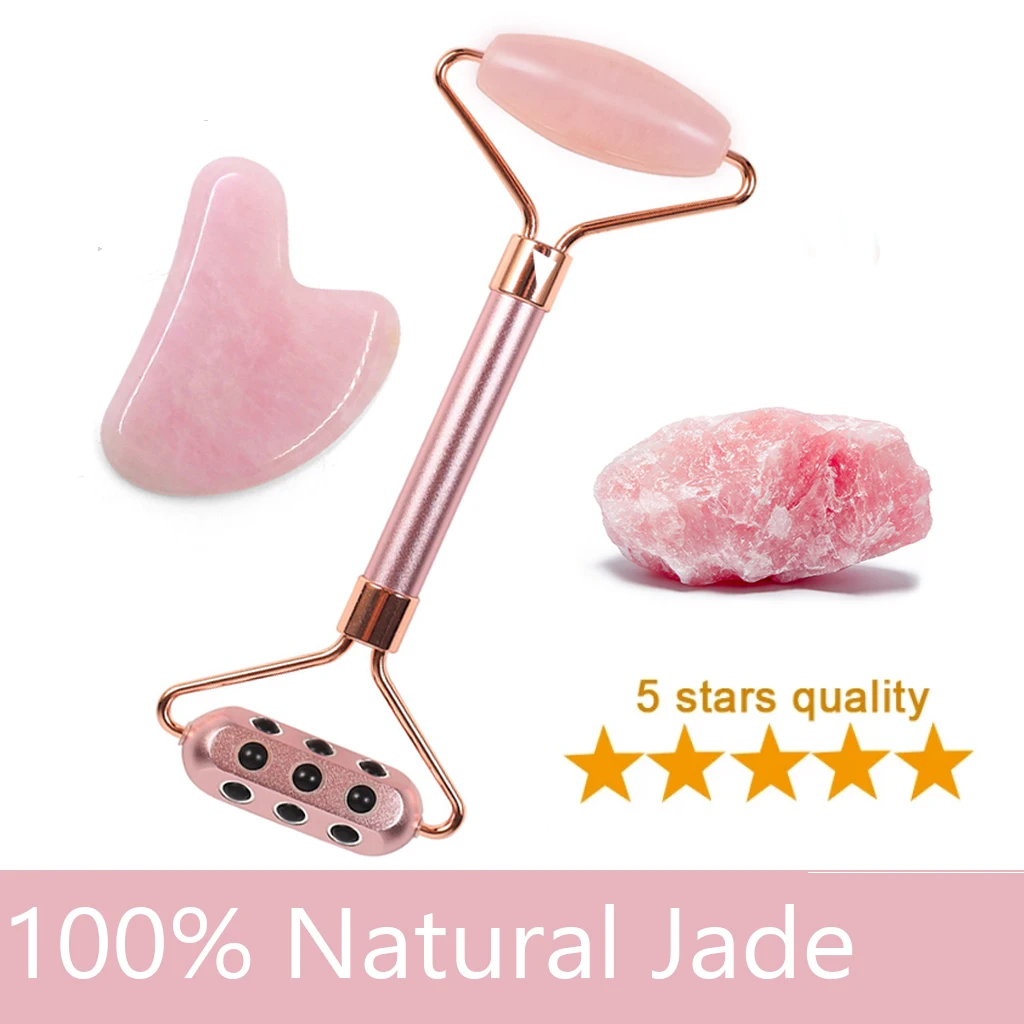 Rose Quartz Roller Gua Sha Set Slimming Face Lifting Massager Tool Natural Jade Facial Massage Roller Stone Skin Roller Beauty