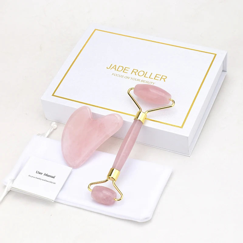 Rose Quartz Jade Face Roller Slimming Massager Face Lifting Natural Jade Stone Facial Massage Roller Skin Care Beauty Box Set