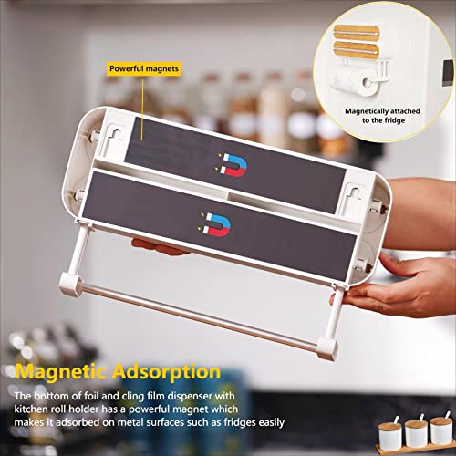 Quasziwa Porta Rotolo da Cucina da Parete Per 3 Rotoli - Dispenser Pellicola e Alluminio Film di Aspirazione Magnetica con Taglierina Affilate, Taglia Pellicola/Carta Stagnola con Portarotolo, Bianco