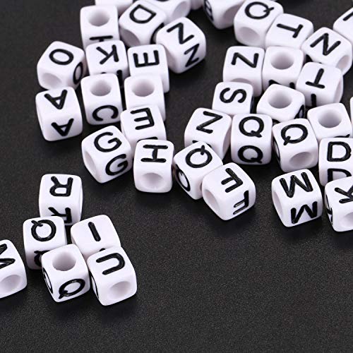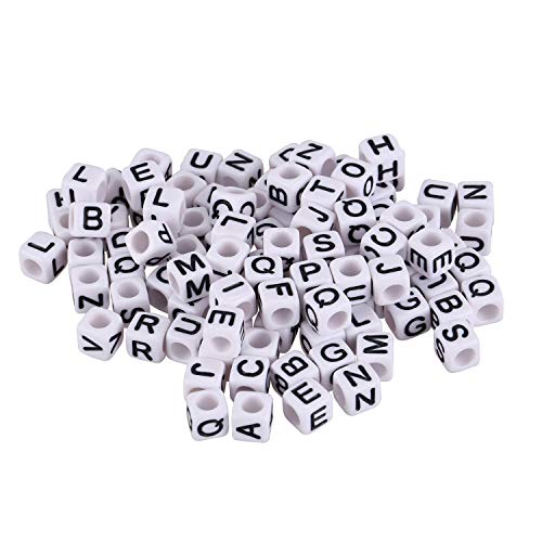 Quata 100 perline a forma di lettera nera/bianco con nastro, bracciale con fagioli