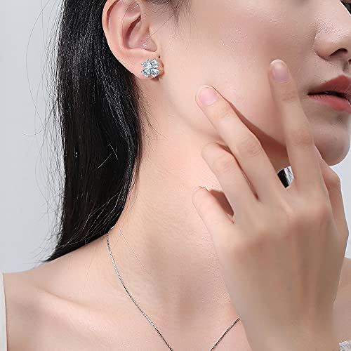 Erba del quattro-foglio Gioielli Cuore Orecchini argento 925 Donna "Lucky Clover",Anallergici, Delicata Scatola di Gioielli, Acquamarina Gioiello Delicato Porta Fortuna Amuleto, Regalo per Lei