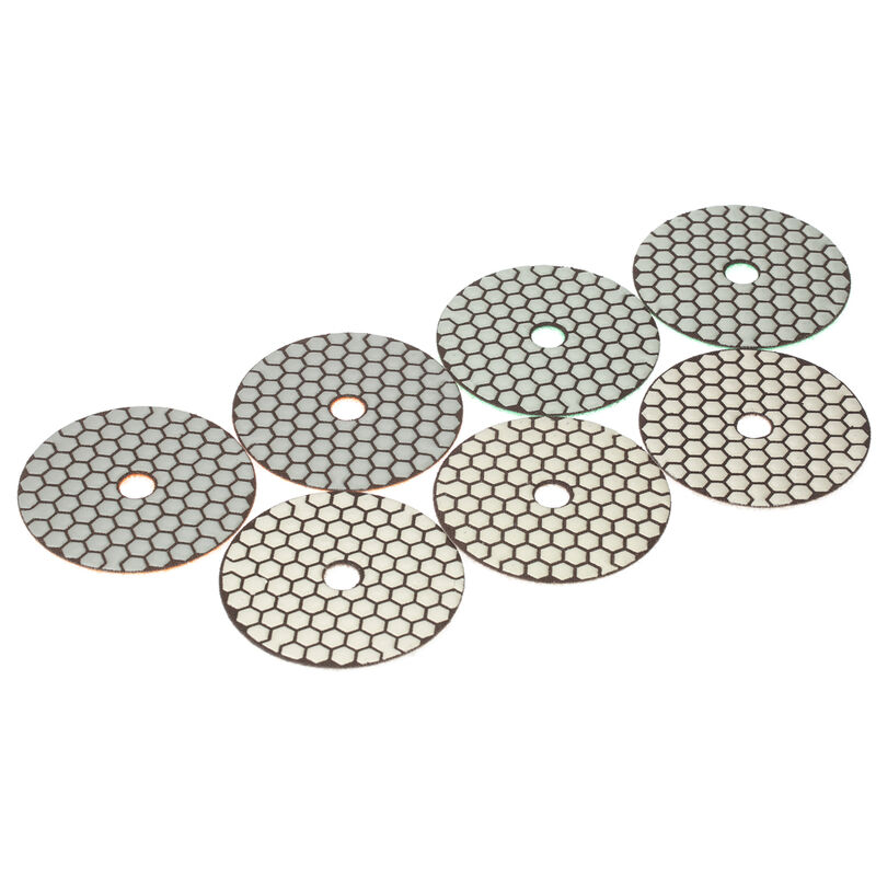 Questo set comprende 7pcs asciugare pastiglie taglio dei diamanti. E 'adatto per la lucidatura del granito, cemento, marmo, pietra, piastrelle, ecc Caratteristiche: A base di polvere di diamante di alta qualità impregnato in resina. Asciugare la lucidatura senza acqua. Flessibile e lucidatura liscia. Lucidatura con velocità rapida e senza graffi. Perfetto per il granito, cemento, marmo, pietra, piastrelle, ecc specifiche tecniche: Colore: come indicato Materiale: Polvere di diamante impregnato in resina Grana: 2 * 200 Grit, 2 * 800 Grit, 3 * 3000 Grit Diametro esterno: Circa. 100 millimetri / 4" Diametro interno: Circa. 15 millimetri / 0,6" Spessore: Circa. 1,5 millimetri Formato del pacchetto: 10 * 10 * 4cm / 3.94 * 3.94 * 1.57in Peso del pacchetto: 134g / 4,73 once Lista del pacchetto: 7 * Dry platorello Nota: 1. Si prega di consentire errore 1-3mm dovuto la misura manuale. 2. A causa della differenza fra i monitor differenti, l'immagine non può riflettere il colore reale della