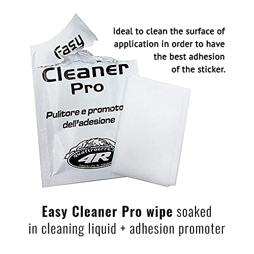 Inclusa nella confezione una salviettina Easy Cleaner Pro imbevuta di liquido detergente e promotore dell'adesività.
