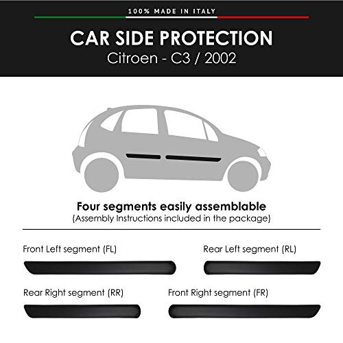 4R Quattroerre.it Modanature Laterali Bumper Paracolpi per C. C3-2002 con Biadesivo 3M