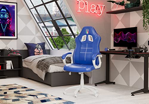 Sedia professionale ufficiale figc, da gioco e da ufficio, con struttura resistente ed ergonomica, personalizzata con i colori della nazionale italiana di calcio