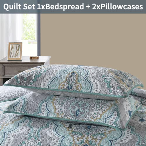Qucover Copriletto Trapuntato Matrimoniale 100% Cotone 230x250cm con Due Federe Trapunta Primaverile Estiva Barocco Vintage Elegante Motivo Double Face Grigio
