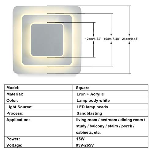Qucover Lampada da Parete Interno, Applique Interni LED Moderno 15W, Luce Bianco Caldo Girevole a 350 Gradi, Decorazione per Sala Soggiorno Camera da Letto Scale Corridoio Forma Quadrato