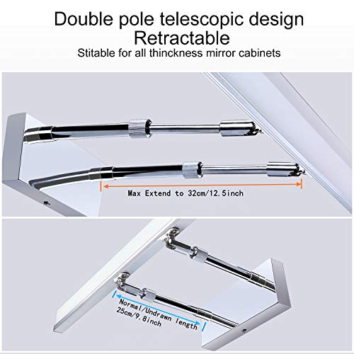 I braccioli della lampada da specchio è regolabile da 25 a 32 cm, in modo da regolare liberamente la distanza fra la luce alla parete