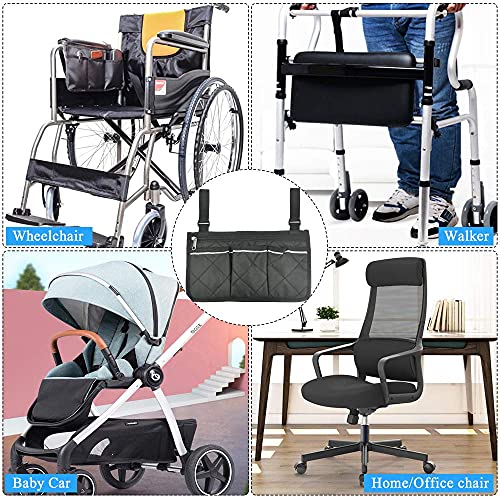 Borsa portaoggetti di grande capacità: l'organizer laterale del bracciolo della sedia a rotelle ha 3 piccole tasche sul davanti che possono contenere molti piccoli oggetti come scatole di medicinali, tazze d'acqua, telefoni cellulari, portafogli, snack, ecc. C'è anche una grande tasca portaoggetti nascosta con cerniera sul retro, in una stanza privata puoi riporre libri, documenti e altri oggetti.