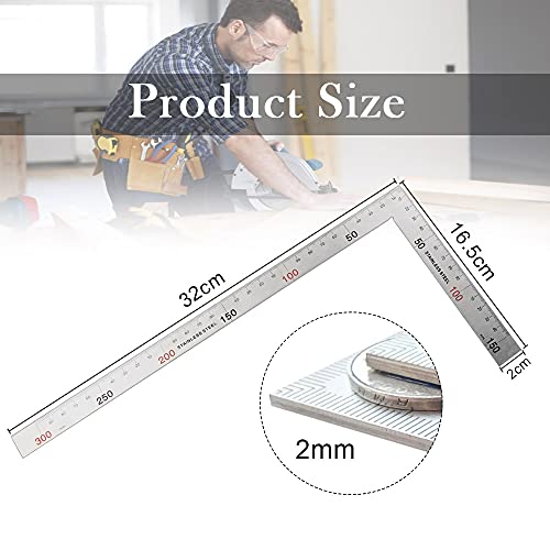 QUCUMER Righello quadrato a L, in acciaio inox, per cornici, ad angolo retto, a forma di L, per falegnami, ingegneri, artigiani 90 Gradi Quadrato Acciaio Righello Angolare Righello Piastra 150*300 mm