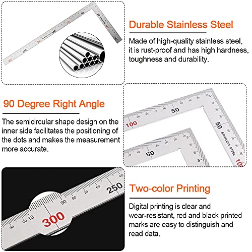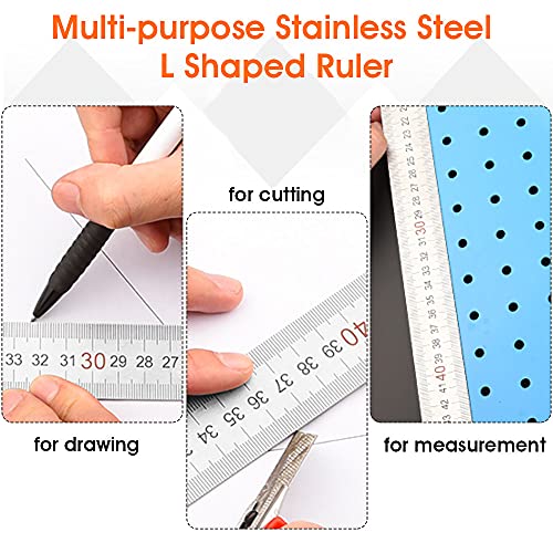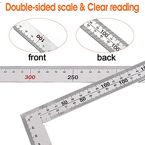 Righello quadrato ampiamente usato: questo righello quadrato a forma di L è molto adatto per costruzioni, carpenteria, ingegneria, ufficio, modellisti, ecc., adatto per misurare e costruire alcuni dati precisi. Può essere utilizzato per la misurazione, il disegno ausiliario, il disegno di ingegneria, il telaio della p