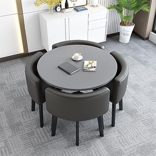 QUDEX Set tavolo da pranzo, set sala da pranzo, set tavolo da pranzo rotondo e quadrato, set tavolo e sedia PU 4, adatto per cucina, soggiorno, sala da pranzo 90cm 1-A-grigio
