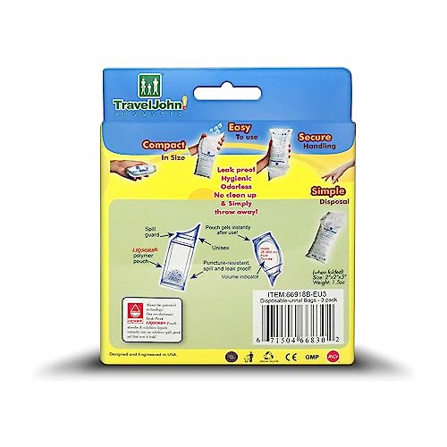 Quebec - TravelJohn - Sacca per orinatoio usa e getta, inodore, igienica e atossica, per uomini/donne e bambini, compagno perfetto per viaggi e attività all'aperto, confezione da 3