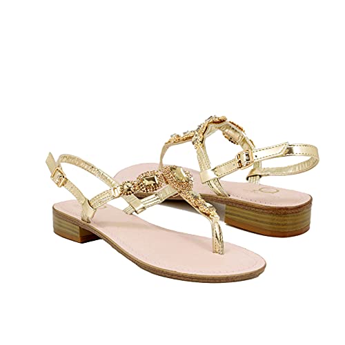 QUEEN HELENA Infradito Gioiello con Strass Sandali Eleganti con Tacco Basso Donna Y3028 Oro 36