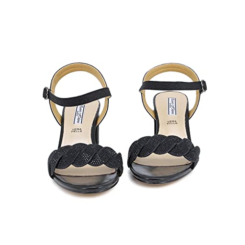 QUEEN HELENA Sandali Eleganti con Tacco Basso Glitterati con Strass Pietre con Cinturino Donna ZM9006 Nero, numeric_37