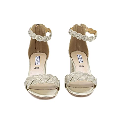 QUEEN HELENA Sandali Eleganti con Tacco Basso Glitterati con Strass Pietre con Cinturino Donna ZM9005 (Oro, numeric_38)