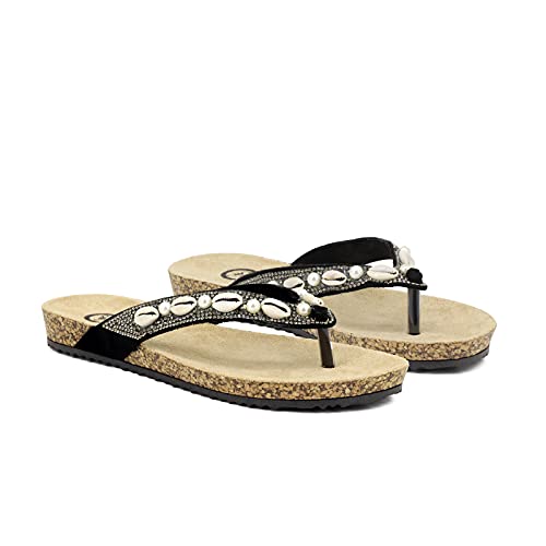 QUEEN HELENA Sandali Infradito Mare Spiaggia Comodi Estivi Casual Aperti Leggeri Donna R2115 Nero 39