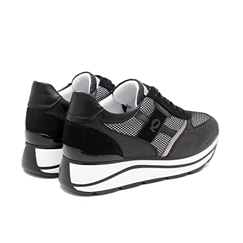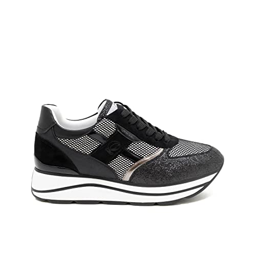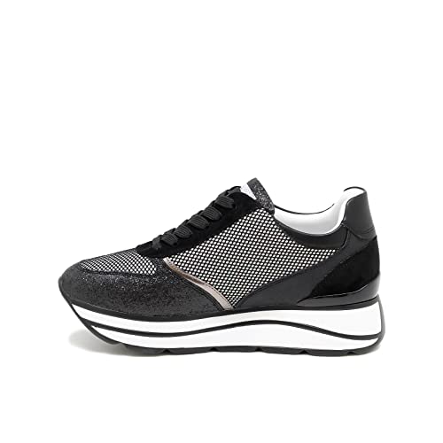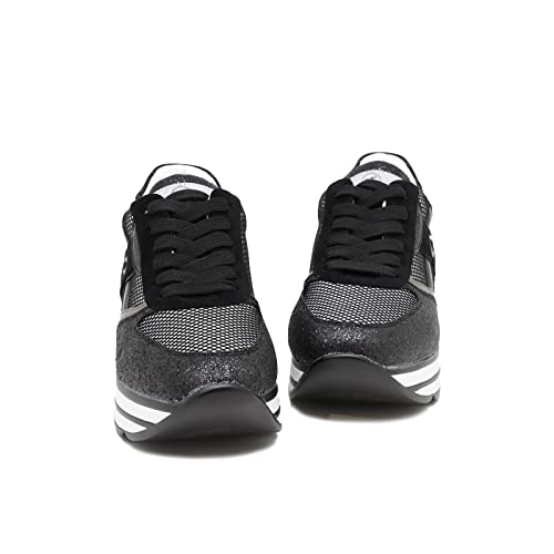 QUEEN HELENA Scarpe da Ginnastica Casual Platform con Zeppa Comode Glitterate Plateau Sneakers con Lacci Donna X25-48 (X26-22 Nero, Numeric_38)