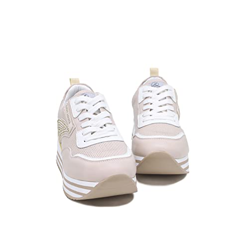 QUEEN HELENA Scarpe da Ginnastica Glitterate Platform con Zeppa Alta Sneakers Casual con Lacci Donna X25-38 (X26-19 Rosa, Numeric_41)