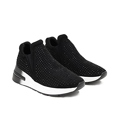 QUEEN HELENA Scarpe da Ginnastica Senza Lacci con Strass Sneakers Casual Eleganti Donna X23-17 Nero 37