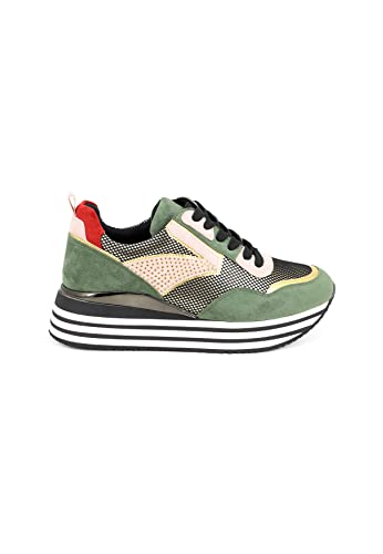 QUEEN HELENA Scarpe da Ginnastica con Zeppa Alte Sneakers Casual Platform Invernali Stringate con Lacci Plateau Comode Donna X27-34 (X27-34 Verde, 37)