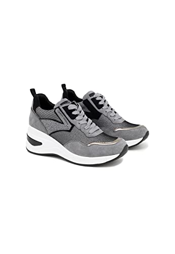 QUEEN HELENA Scarpe da Ginnastica con Zeppa Sneakers Alte Platform con Lacci Plateau Invernali Comode Casual Donna X27-39 (X27-39 Grigio, Numeric_41)