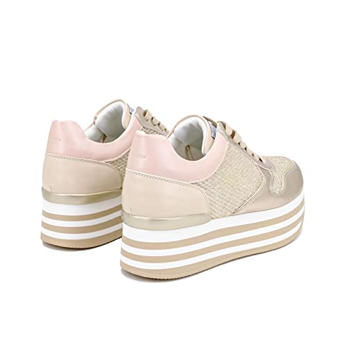 QUEEN HELENA Sneakers Alte Scarpe da Ginnastica Platform con Zeppa Stringate Casual Donna X24-28 (Oro, Numeric_37)