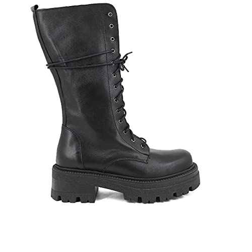 QUEEN HELENA Stivali con Lacci Anfibi di Pelle con Plateau Invernali Casual Comodi Donna WANDA 146 (Marrone, numeric_35)