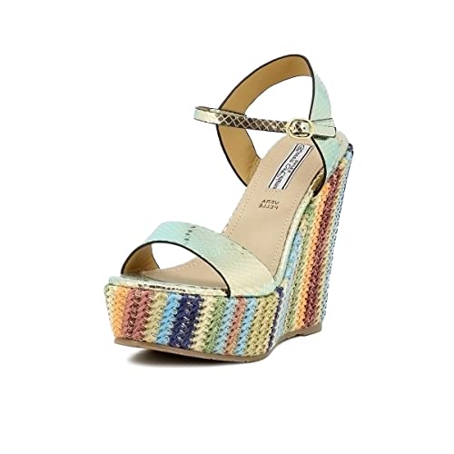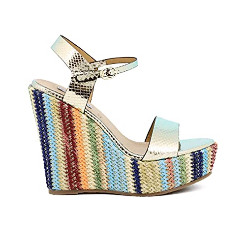 QUEEN HELENA Zeppe Sandali Alti Arcobaleno con Cinturino Casual Donna ZM80222 (Oro, numeric_40)