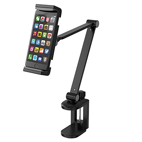 Queen.Y Supporto per Cellulare Supporto Durevole Staffa di Montaggio per Tablet con Bracci Lunghi a Clip per Letto da Scrivania Compatibile con Tablet da 4-13 Pollici