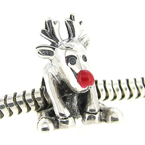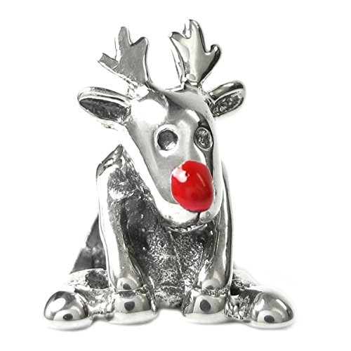 Queenberry - Ciondolo a forma della renna di Natale Rudolph con naso rosso in argento Sterling 925 per braccialetti Pandora, Troll, Chamilia, Biagi e altri braccialetti di design europeo