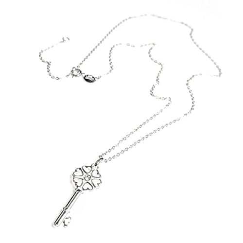 Queenberry - Collana con ciondolo a forma di chiave "La chiave del mio cuore", in argento Sterling, con zirconia cubica, lunghezza collana 40,64 cm con prolunga di 5,08 cm