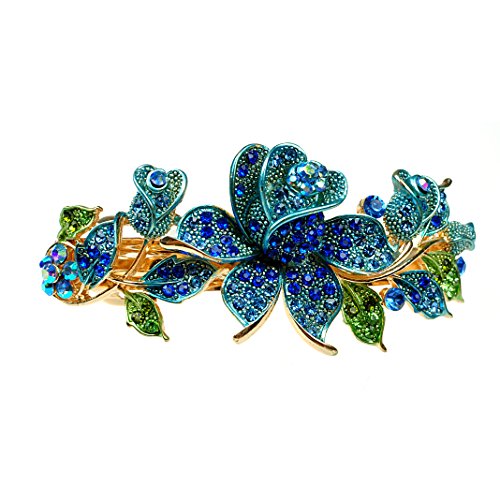 Queenmee blu fiore clip per capelli con strass capelli clip clip clip per capelli con strass di cristallo barrette matrimonio blu di capelli fermacapelli capelli grip capelli gioielli capelli clip gioiello grande