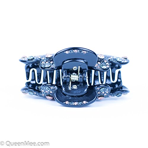 Queenmee marrone per capelli con strass di cristallo capelli clip artiglio cristallo capelli artiglio molletta per capelli blu diamante farfalla capelli morsetto molletta capelli jaw artiglio capelli castani capelli, clip, capelli molletta per capelli blu