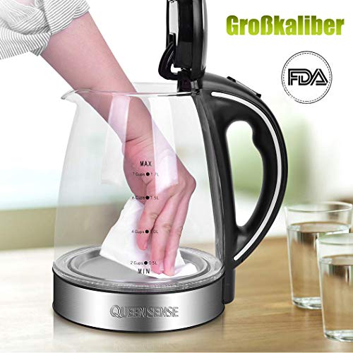 QUEENSENSE - Bollitore in vetro borosilicato con regolazione della temperatura (40-100), a LED, senza BPA, livelli di temperatura 1,7 l, 2200 W