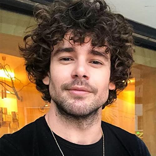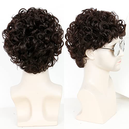 QUEENTAS Parrucca Uomo Parrucche per Moderno Capelli Corti Parrucca Riccia Piena parrucchino uomo Uso Quotidiano e Cosplay (Scuro Marrone)